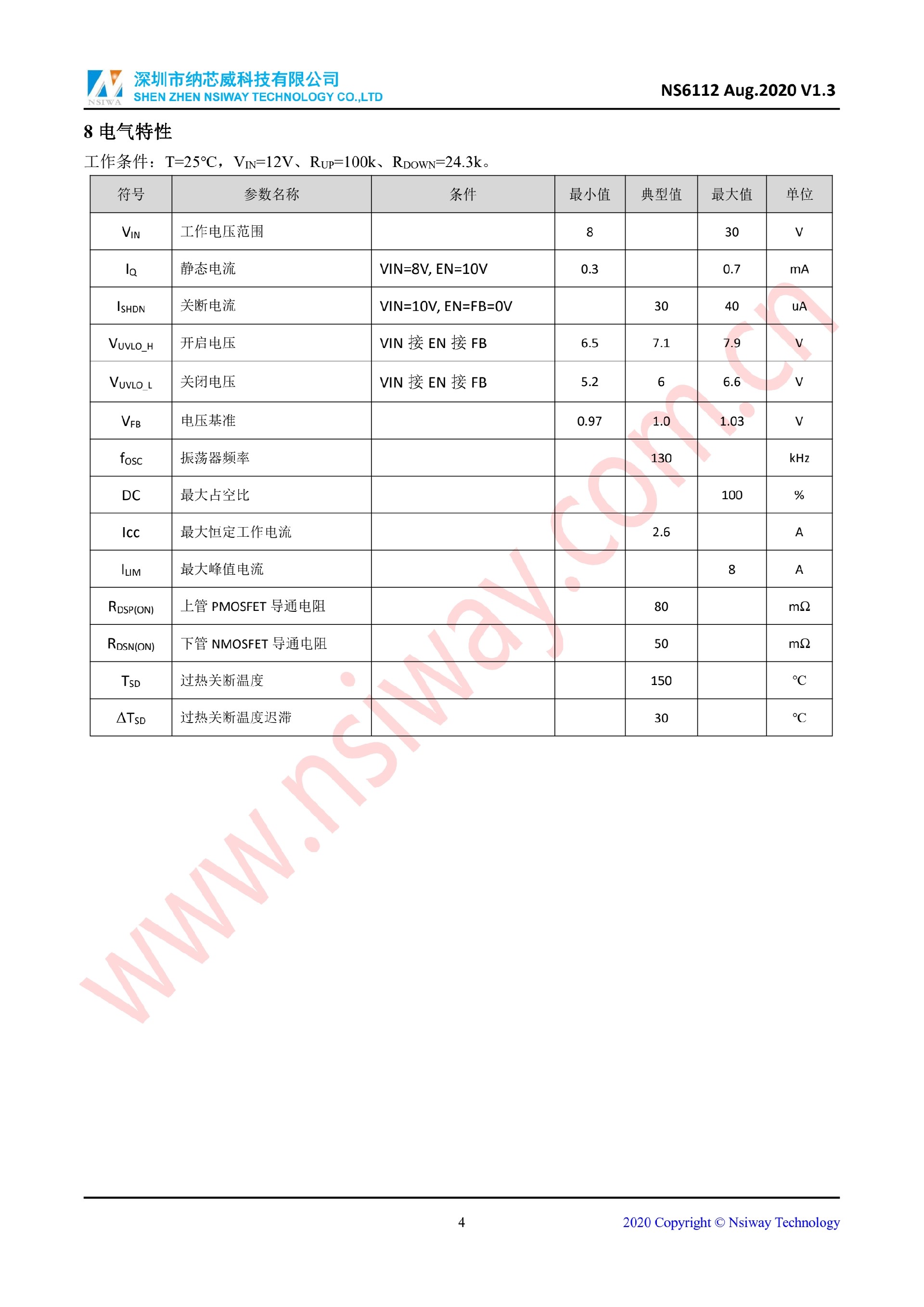 NS6112 8-30V輸入 2.6A輸出同步降壓型穩(wěn)壓器