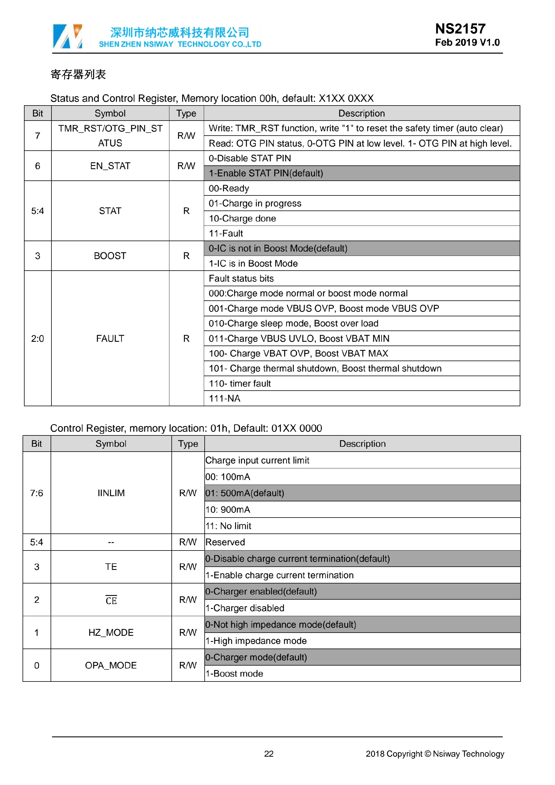 NS2157 I2C控制單節2A快速充電器,支持USB On-The-Go升壓模式