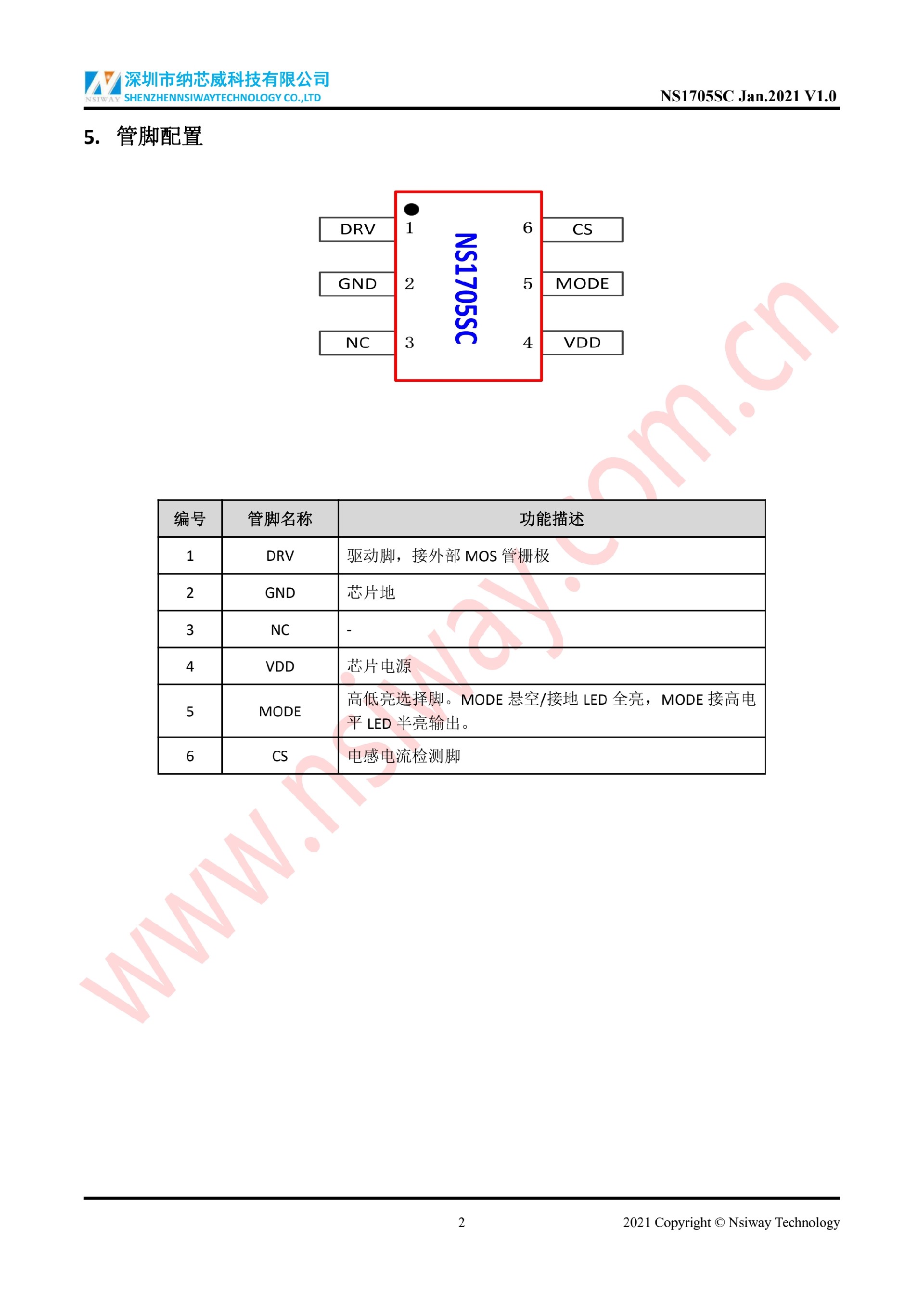 NS1705SC 外置 MOS 管開關降壓型 LED 恒流驅動器