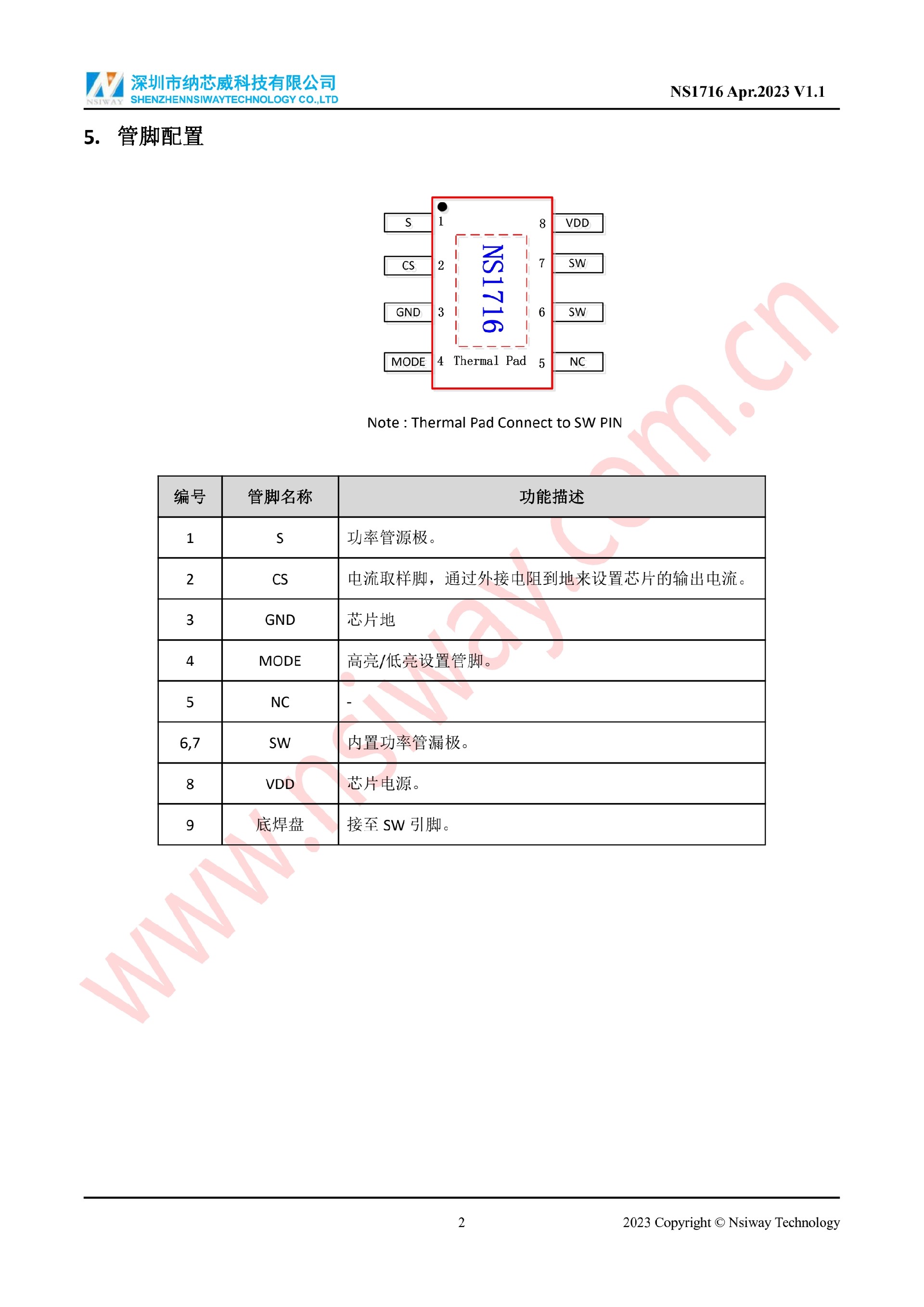 NS1716 內置 MOS 管開關降壓型 LED 恒流驅動器