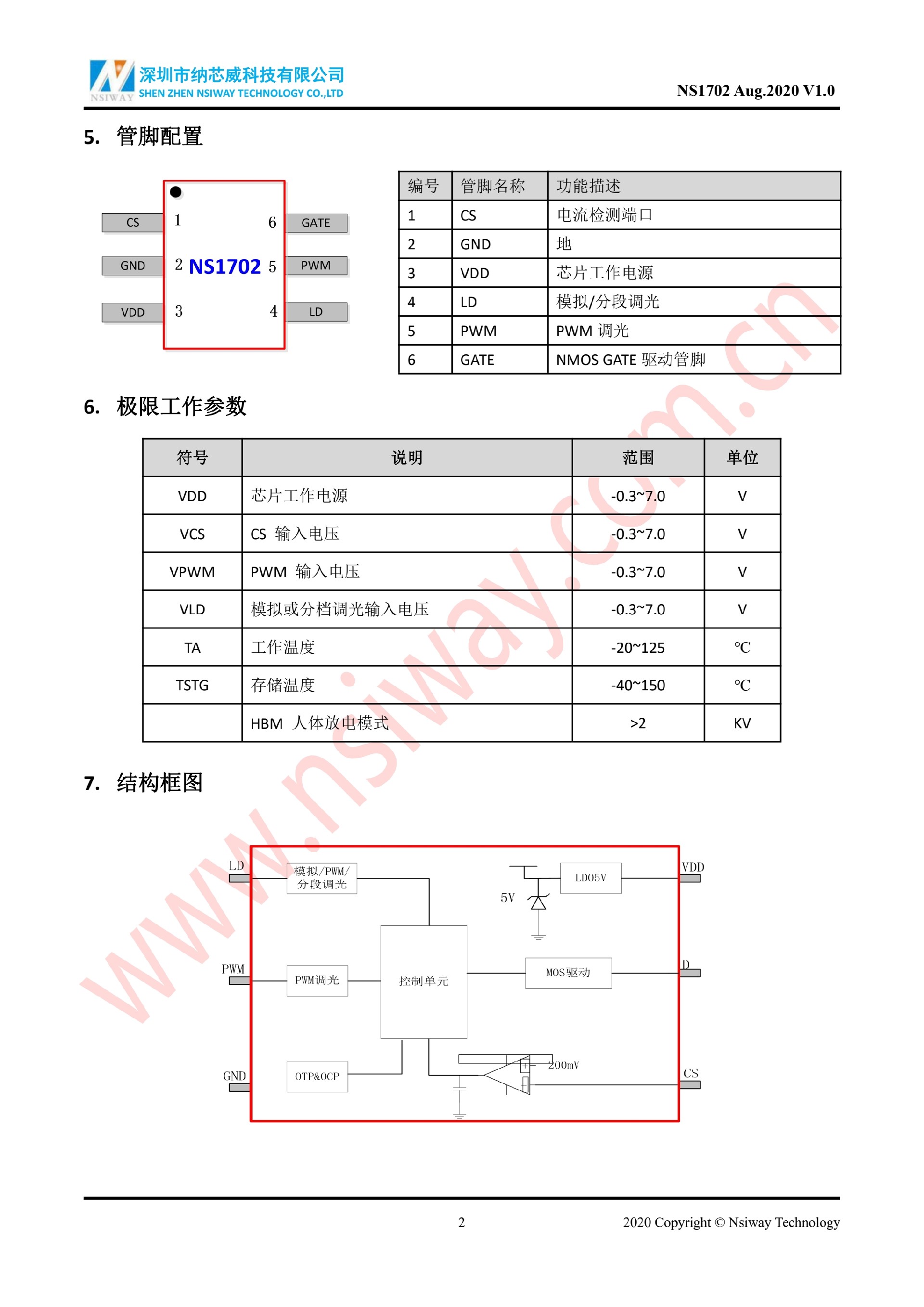 NS1702 多功能平均電流型 LED 恒流驅(qū)動器(SOT23-6)