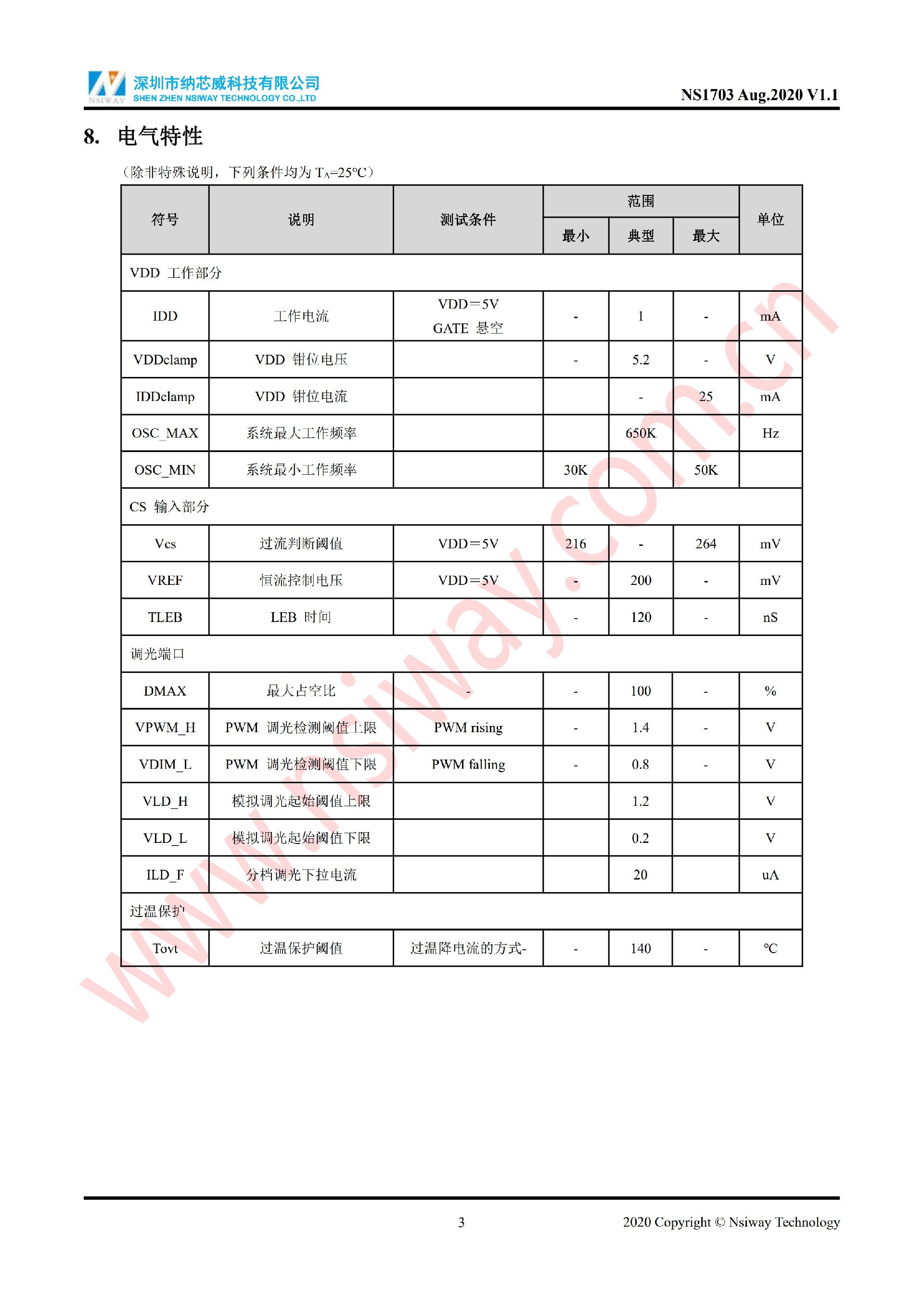 NS1703 1.5A輸出 多功能平均電流型LED恒流驅動器(內置MOS管,SOP-8)