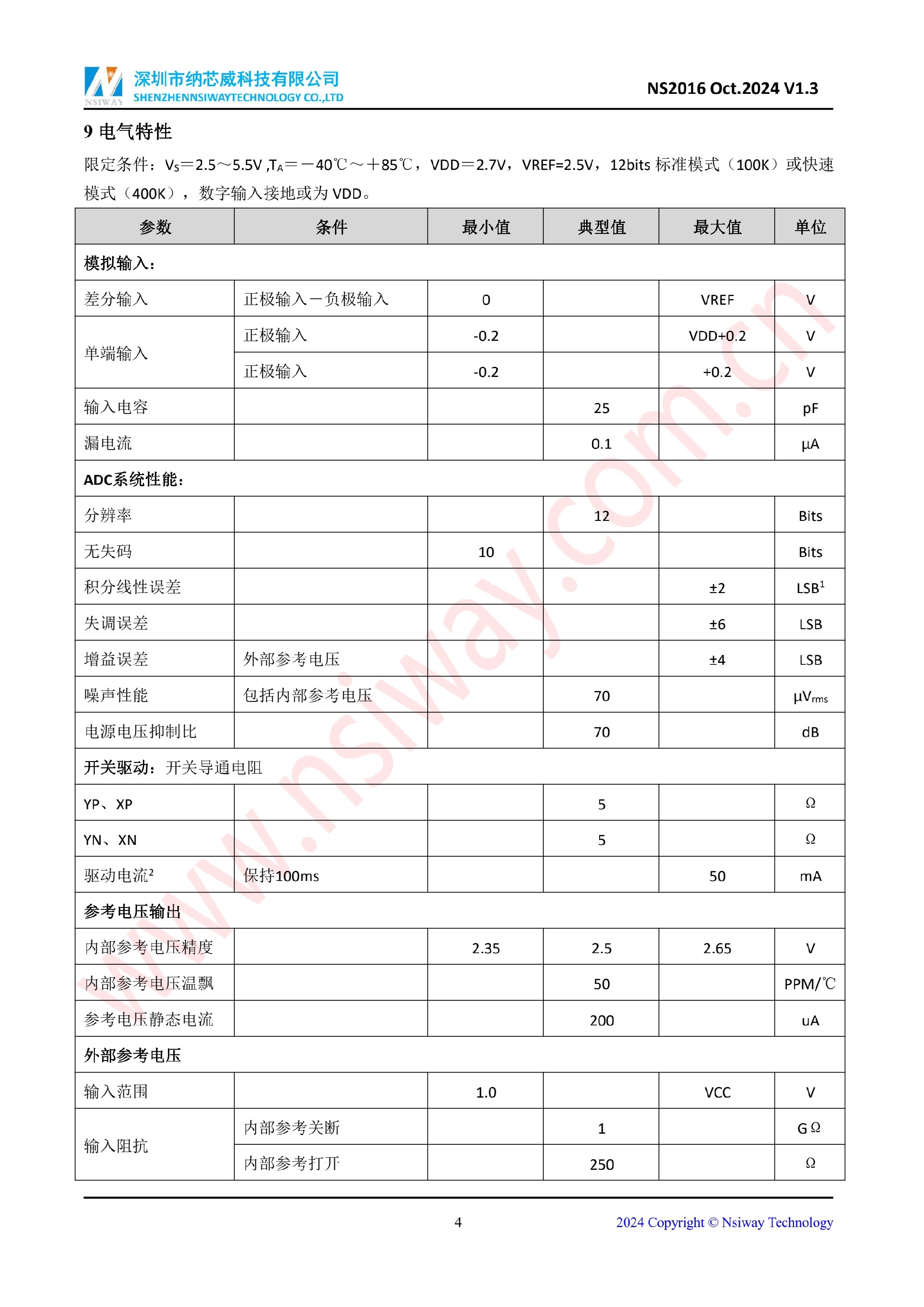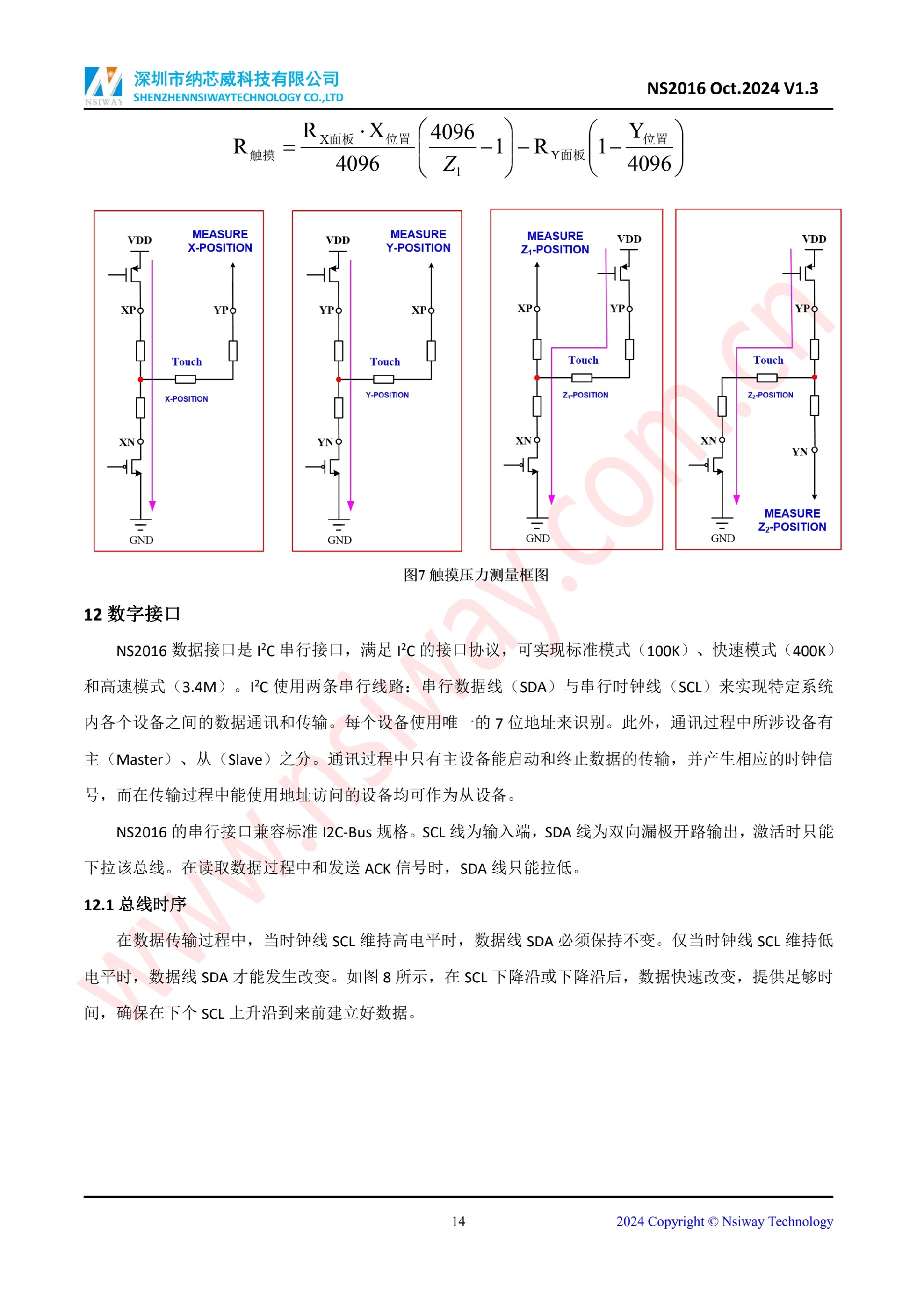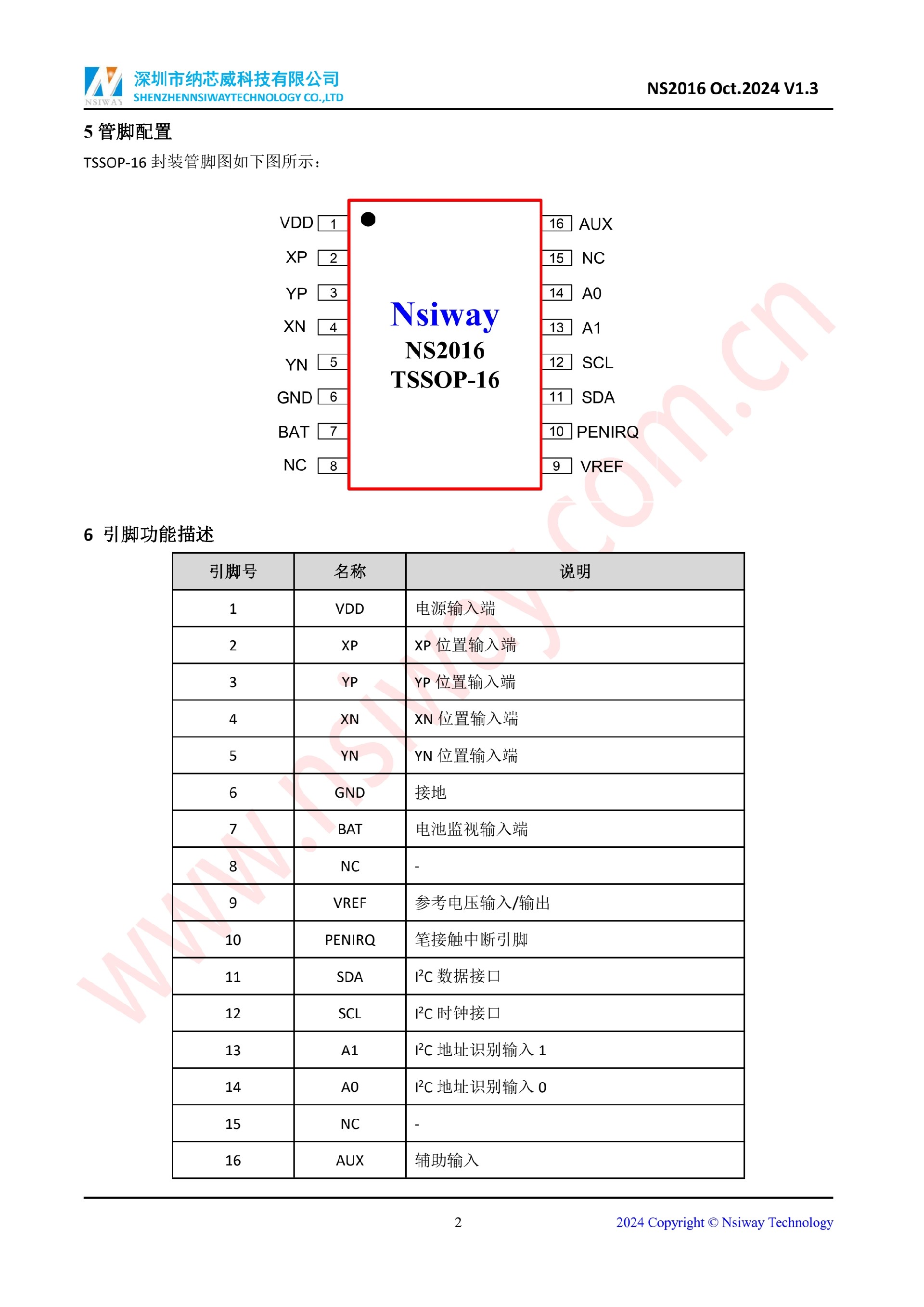 NS2016 I2C接口 4 線電阻觸摸屏控制器