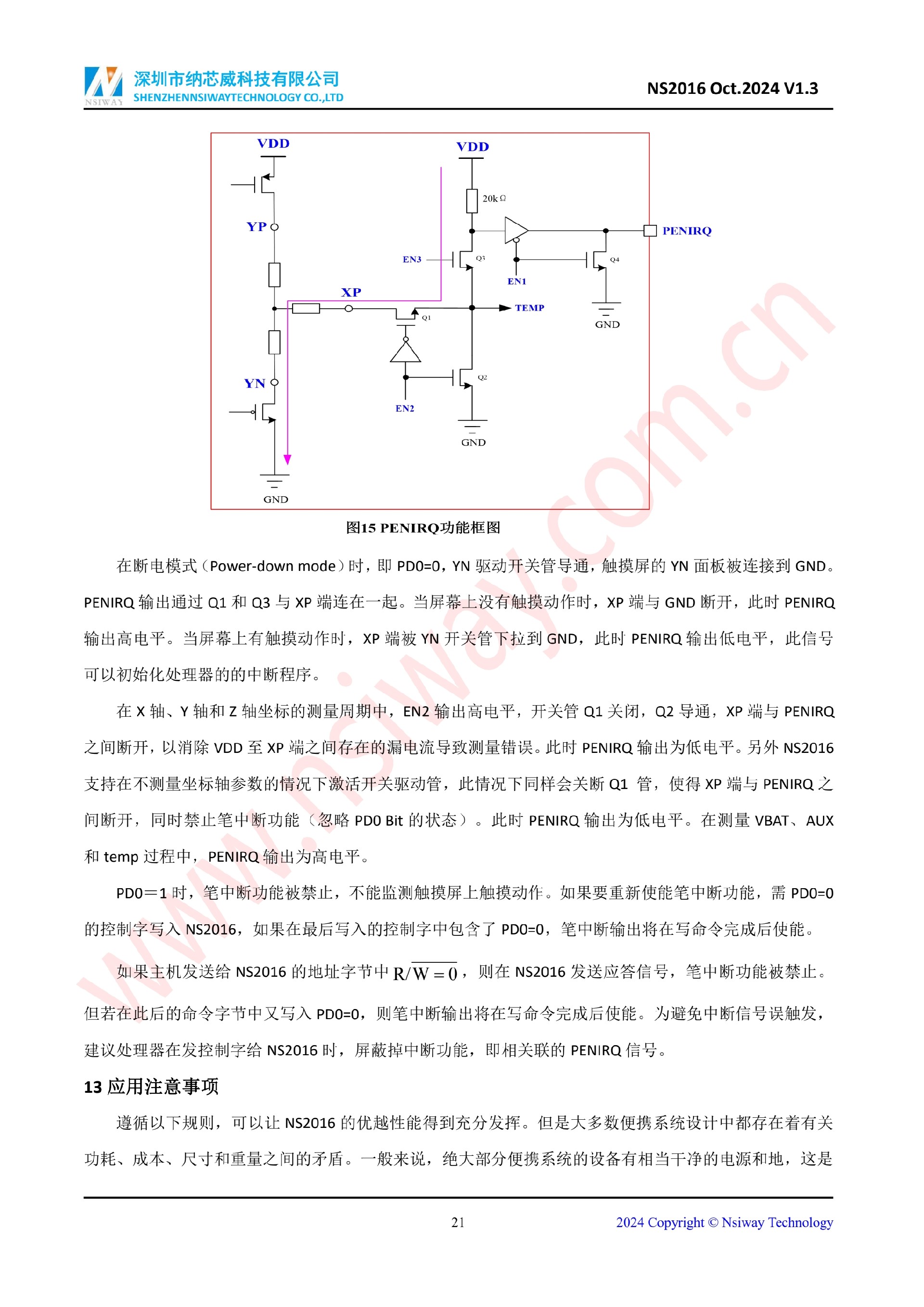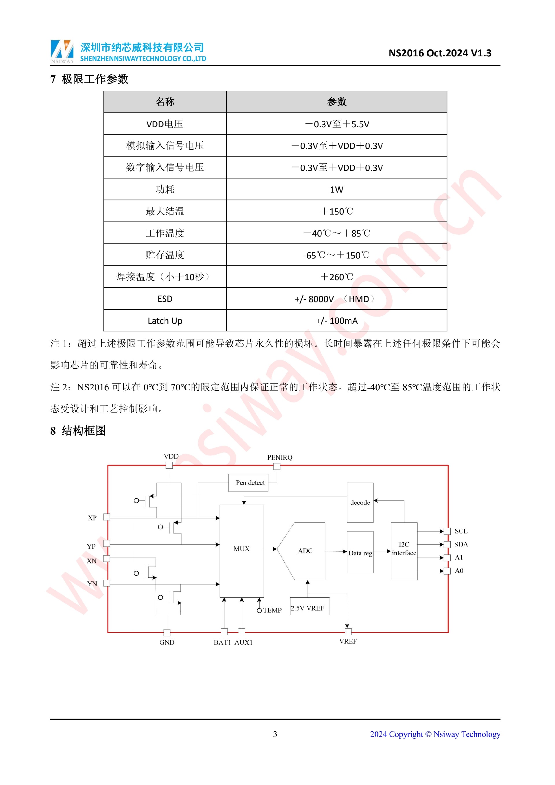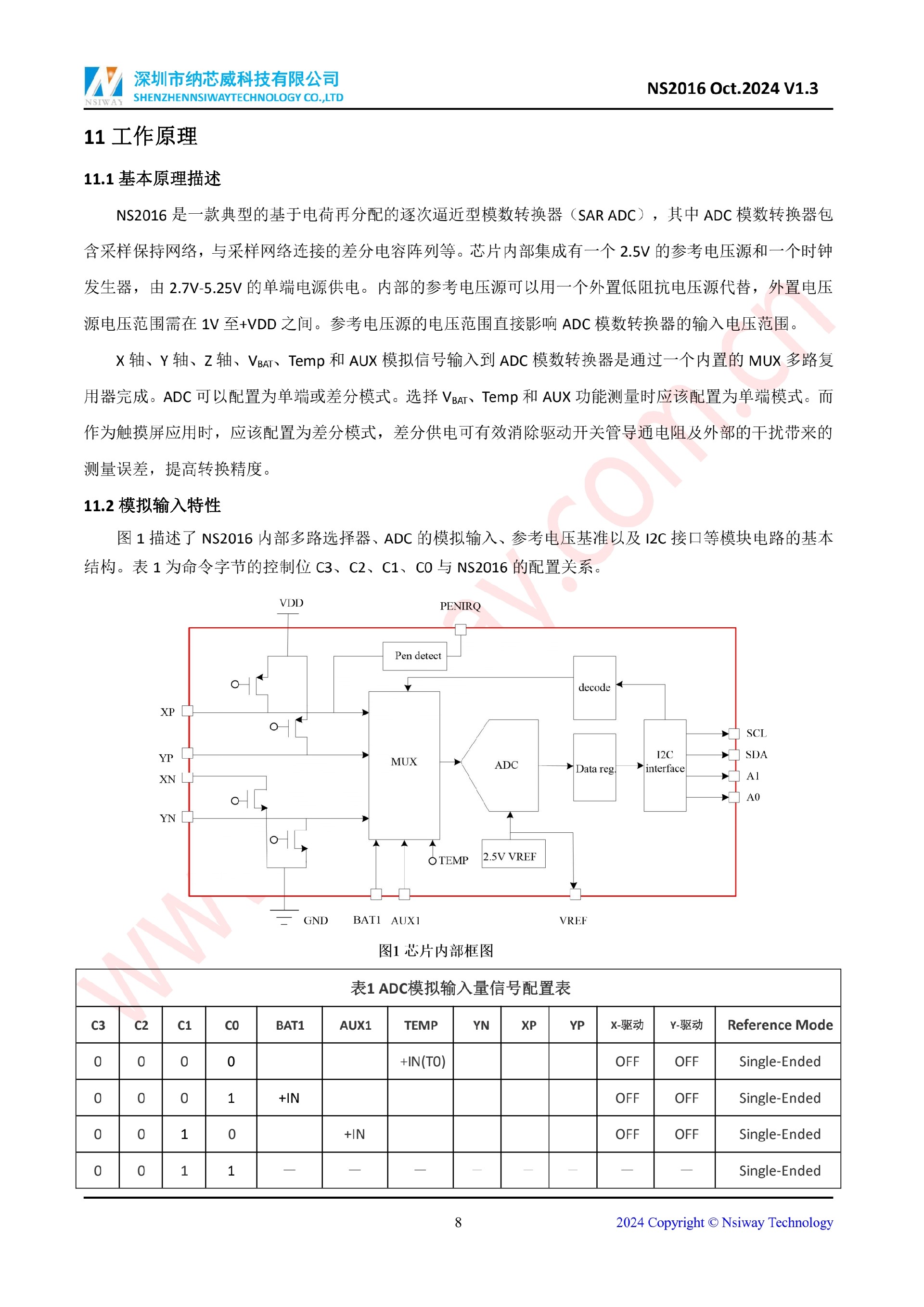 NS2016 I2C接口 4 線電阻觸摸屏控制器