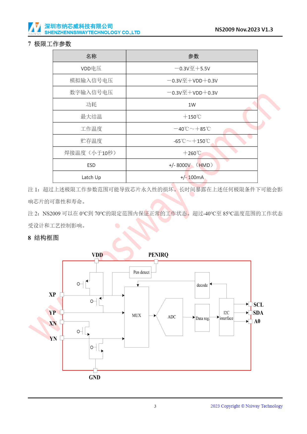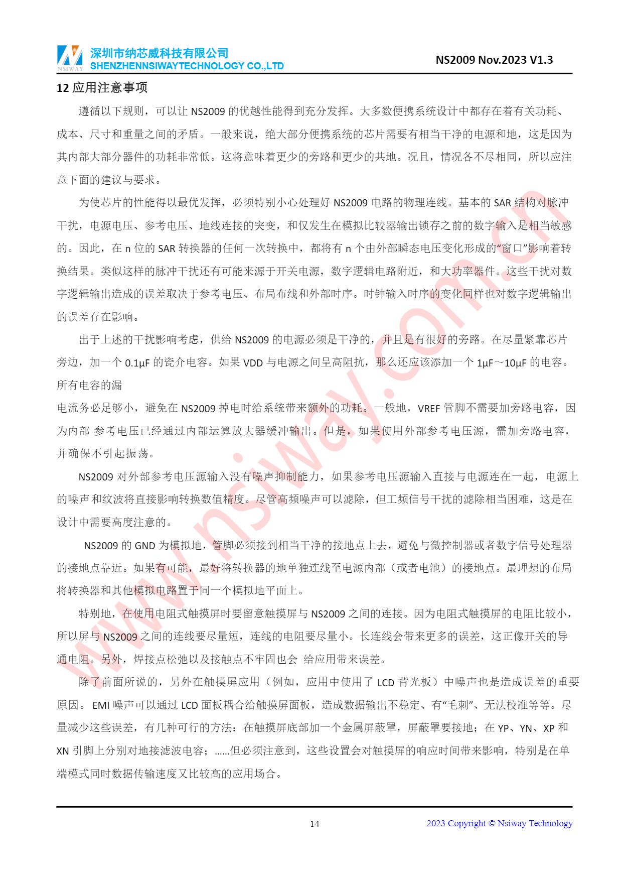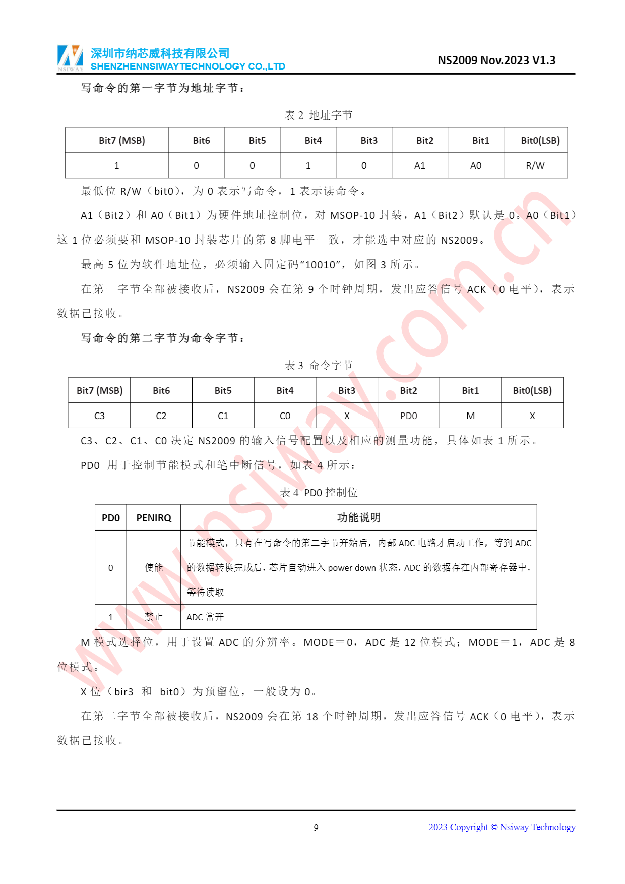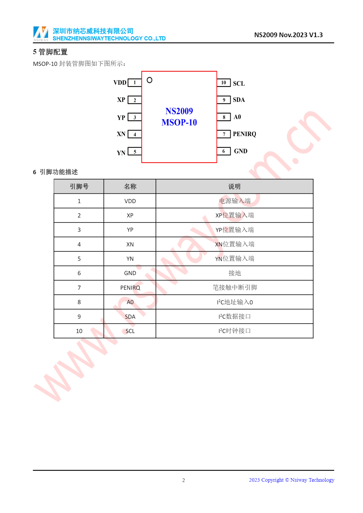 NS2009 I2C接口-4線電阻觸摸屏控制器