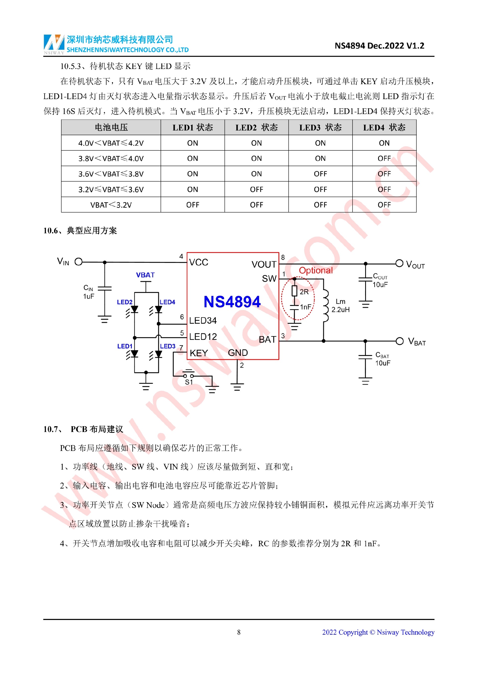 NS4894 4 LED 指示燈藍牙耳機充電倉-線性鋰電池充放電管理 IC