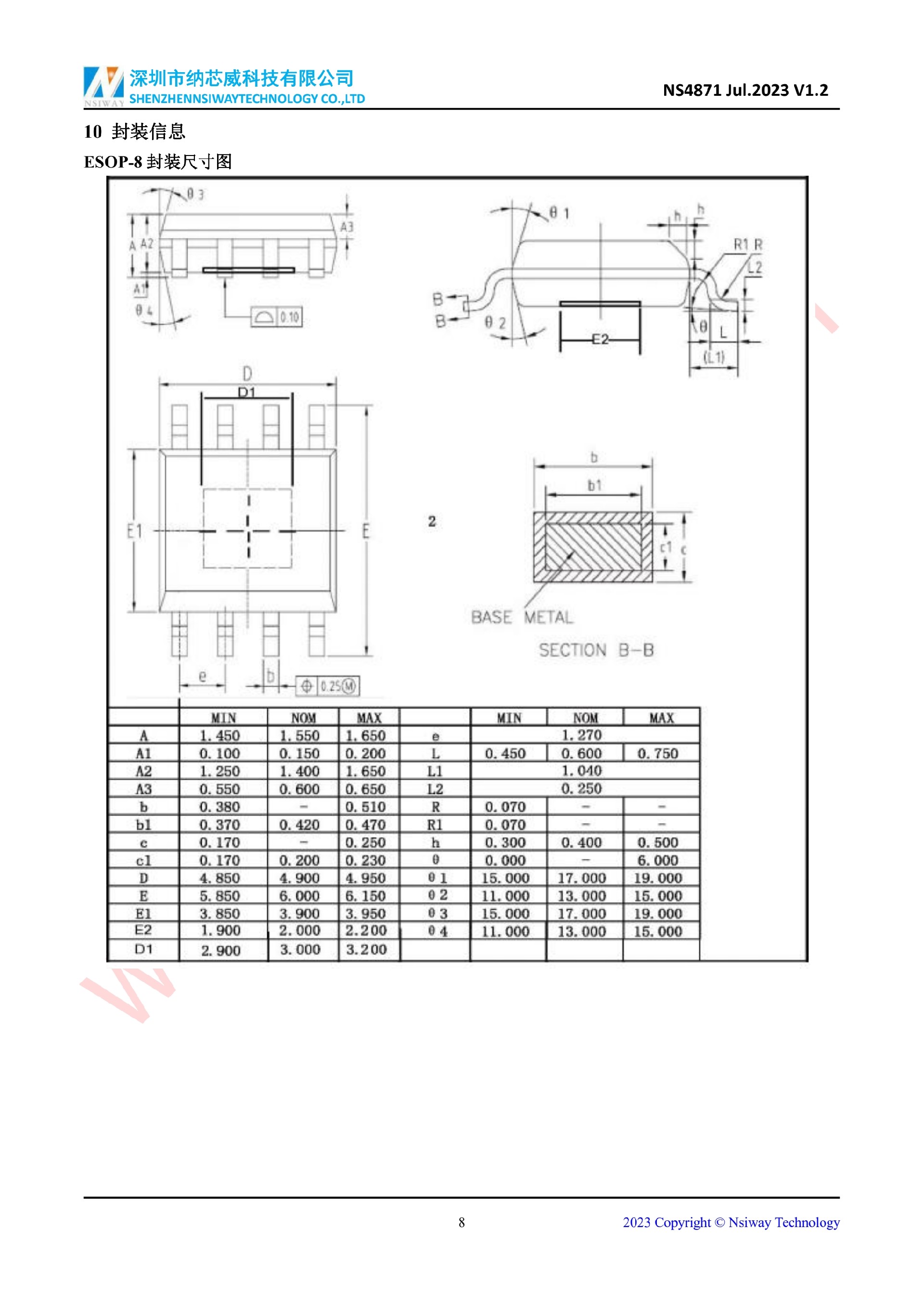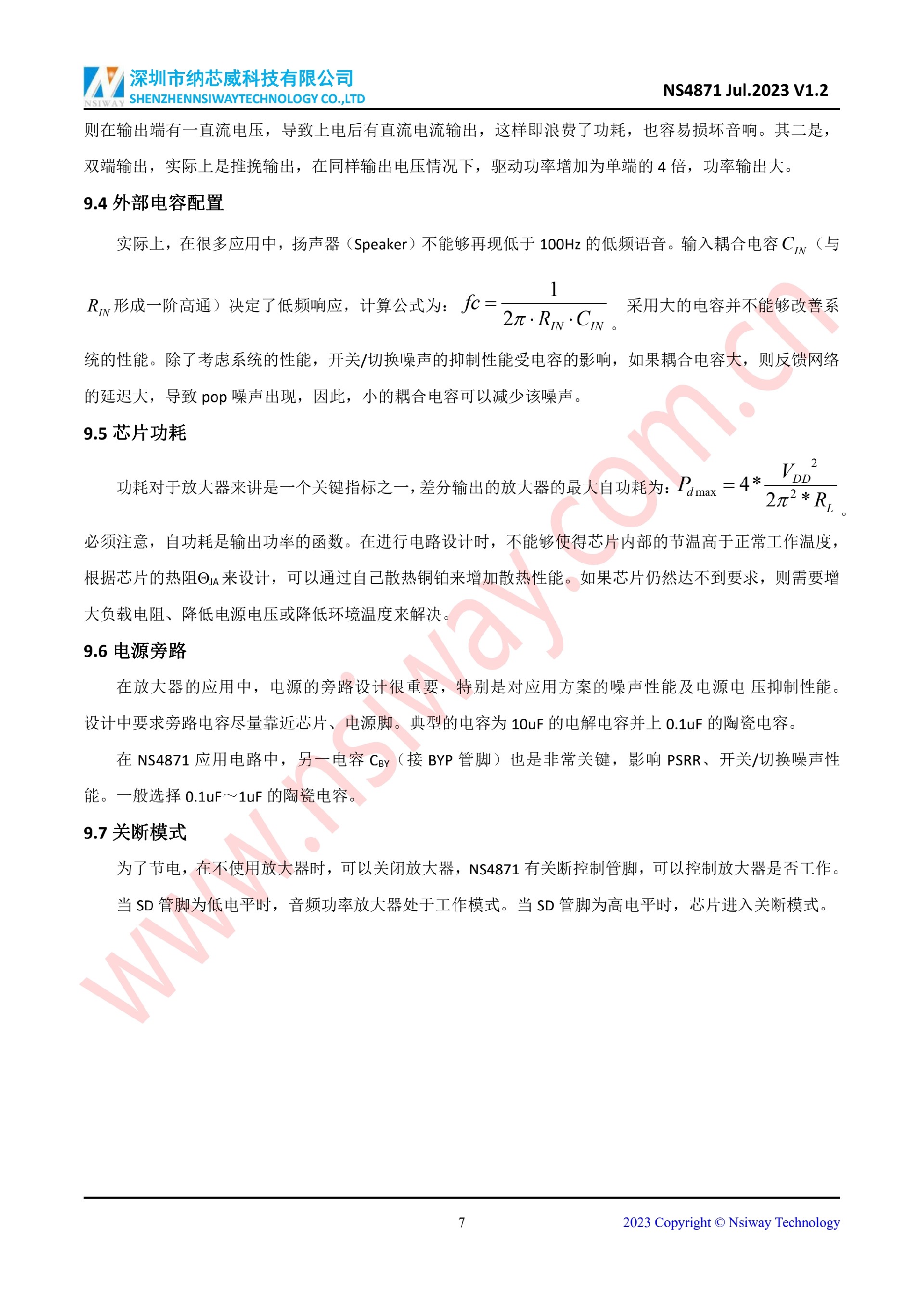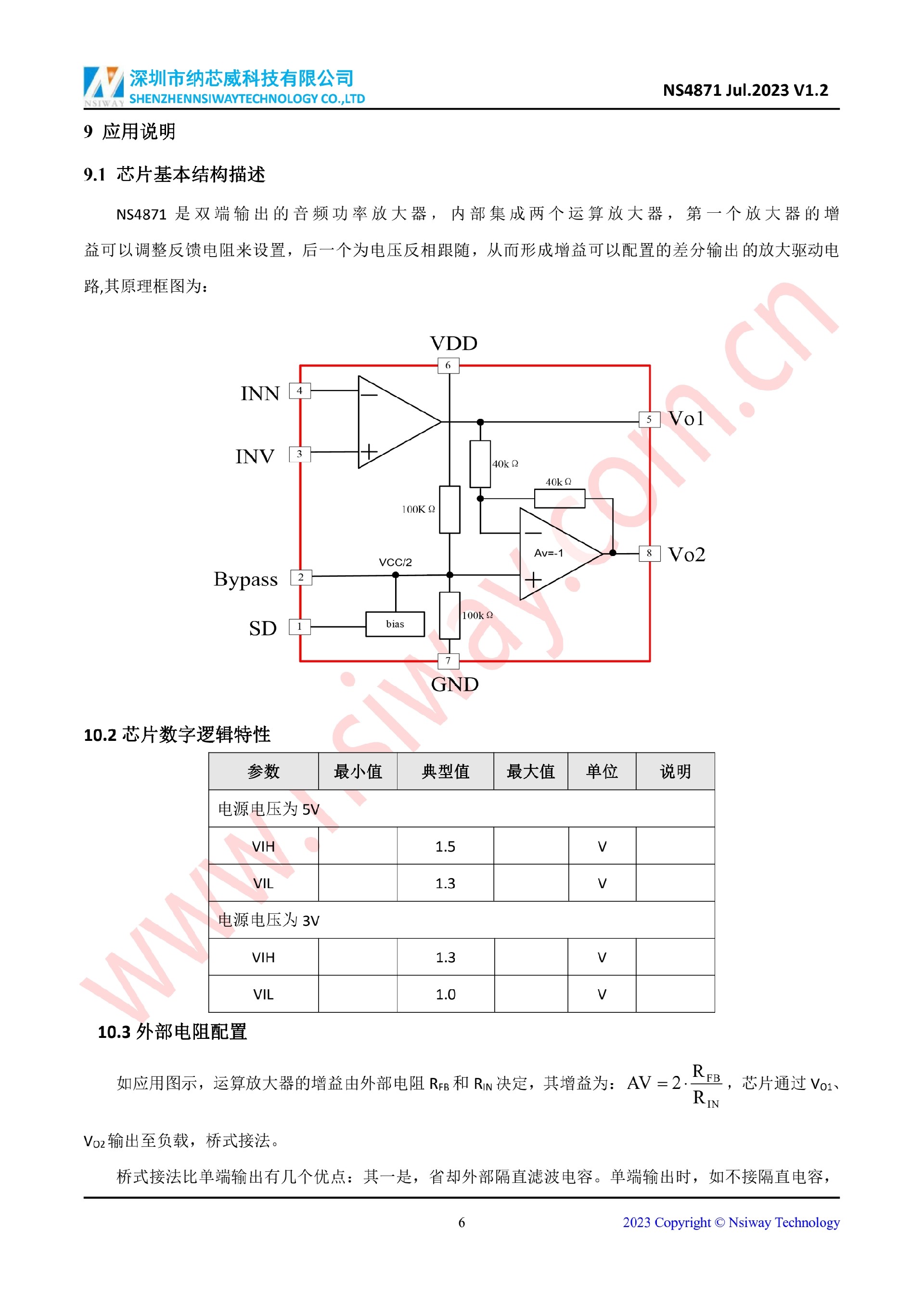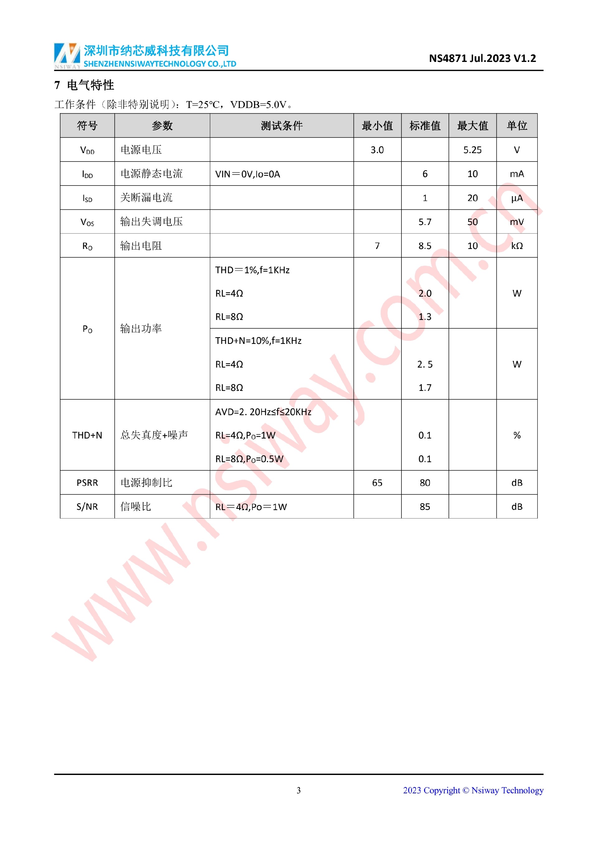 NS4871 2.5W 單聲道 AB 類音頻功率放大器