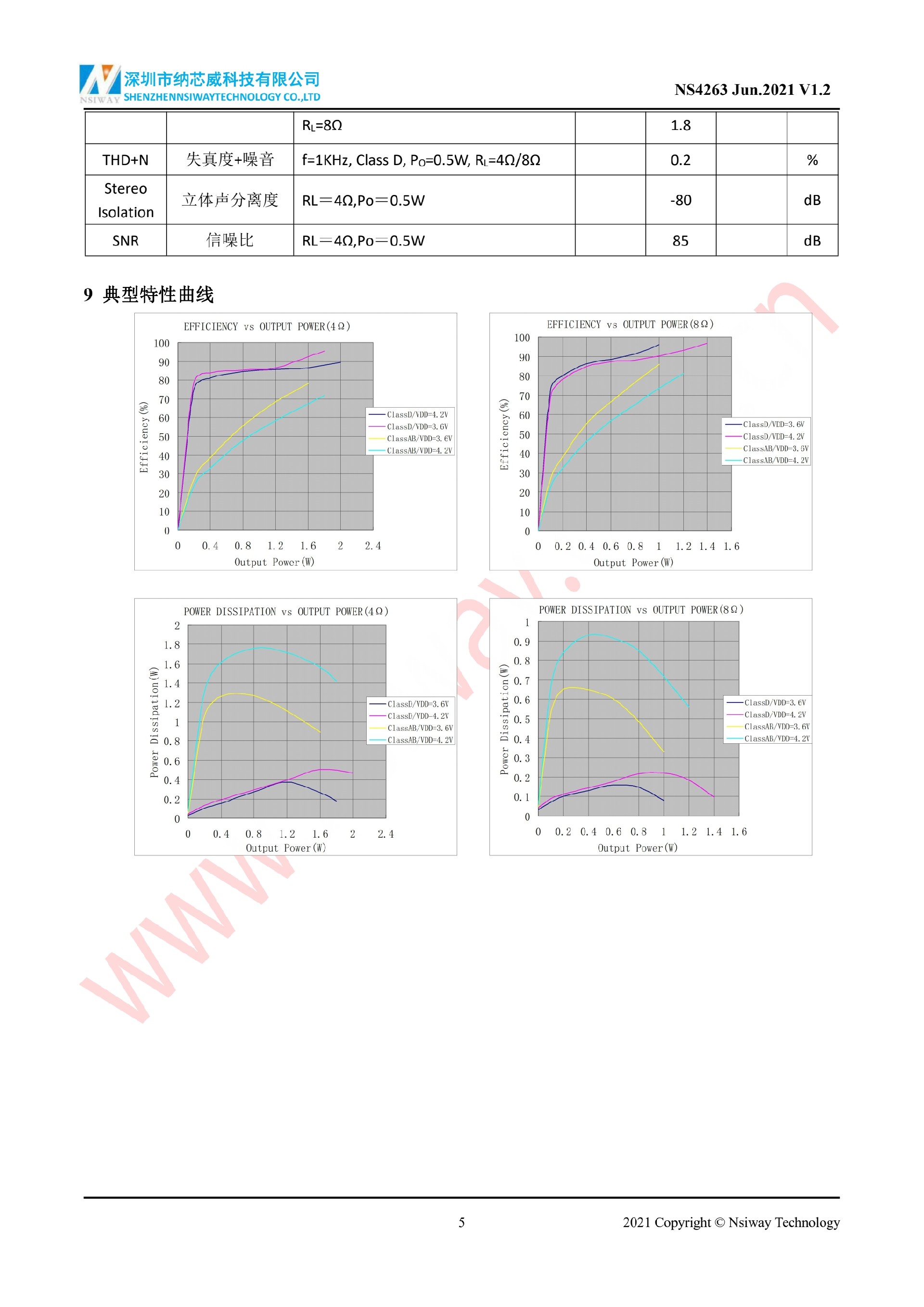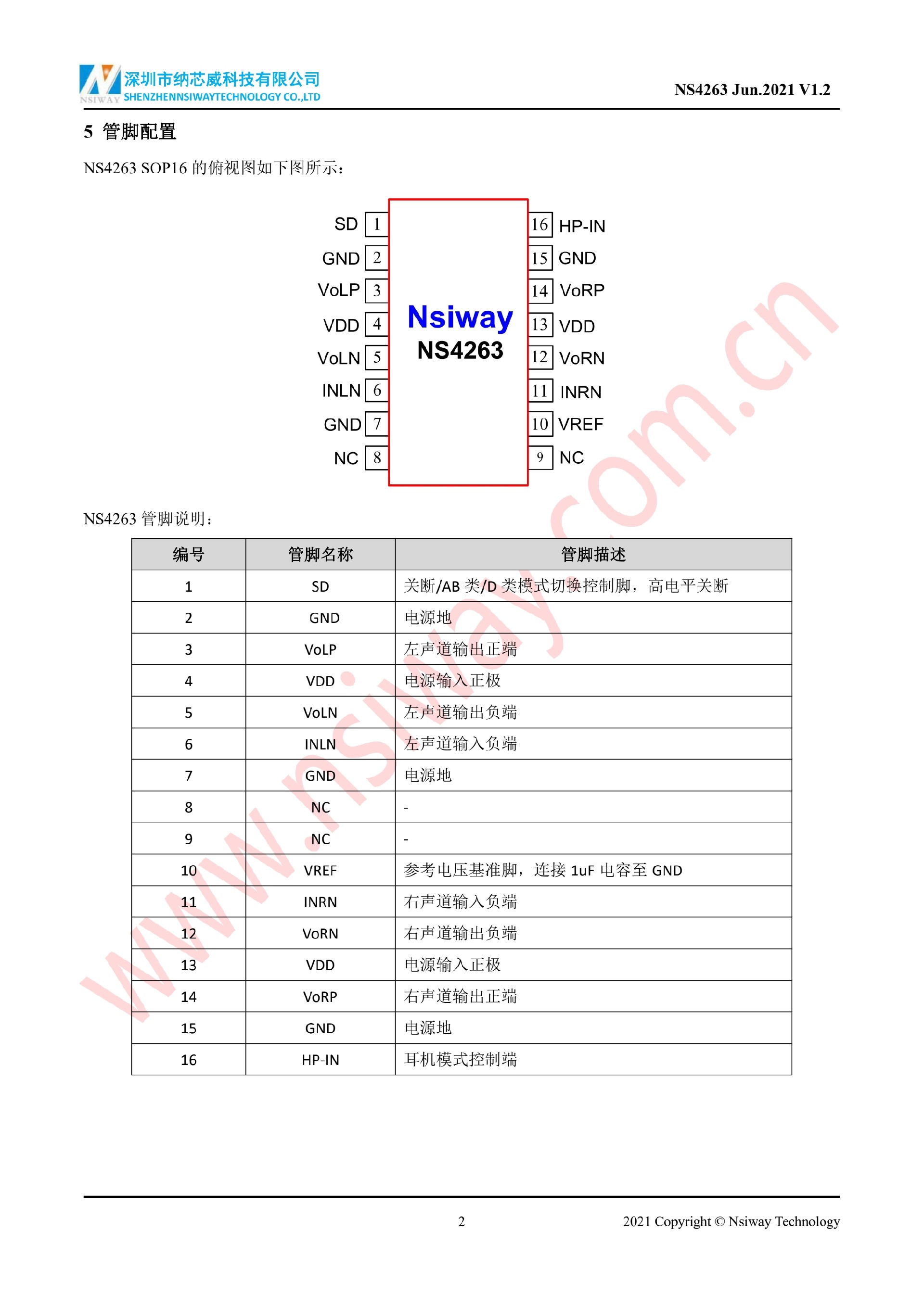 NS4263B 3.1Wx2 雙聲道 AB/D 類雙模音頻功率放大器附加耳機模式
