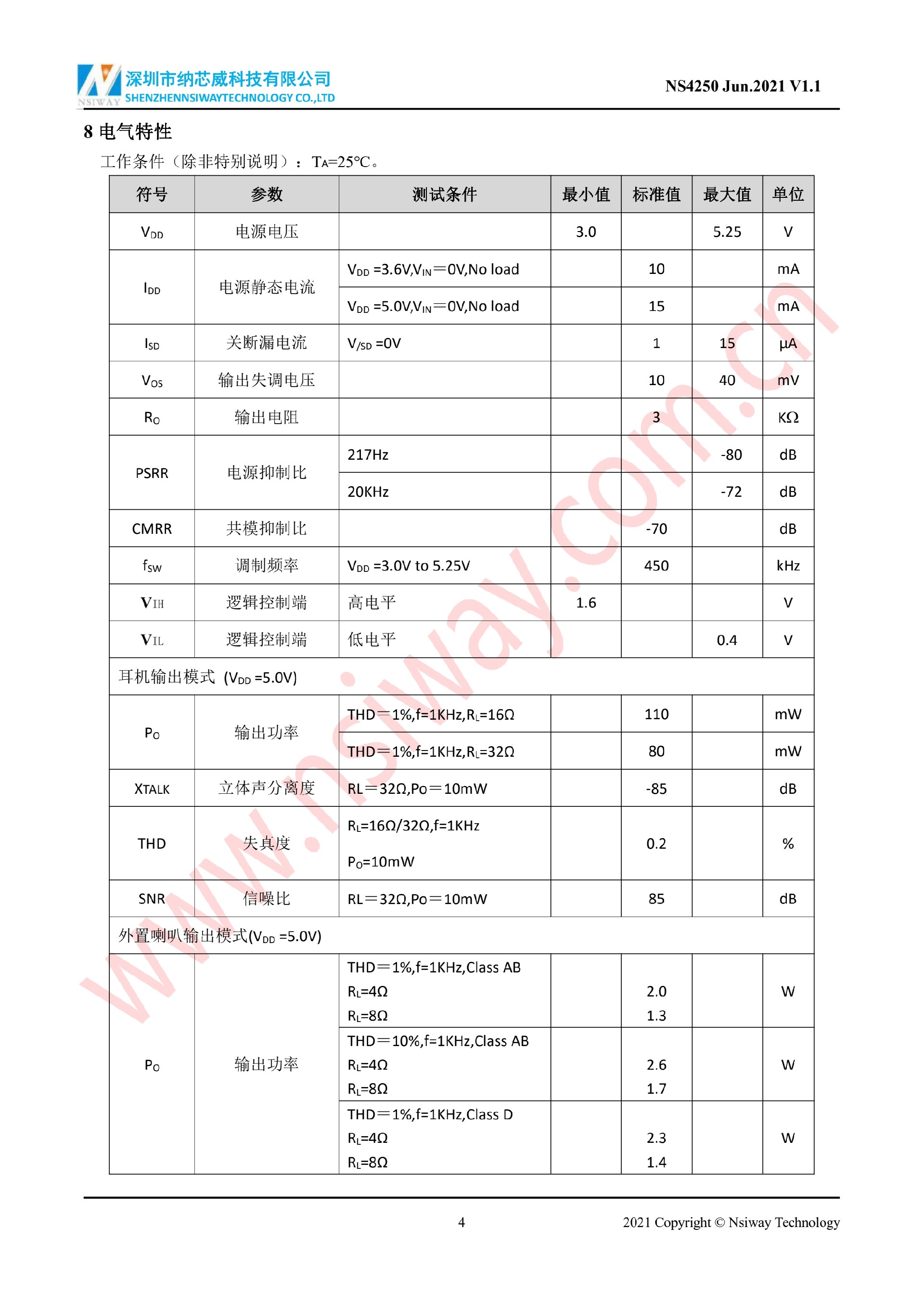 上一篇:NS4160 5W 單聲道AB/D類雙模音頻功率放大器附加一線脈沖控制(eSOP-8)