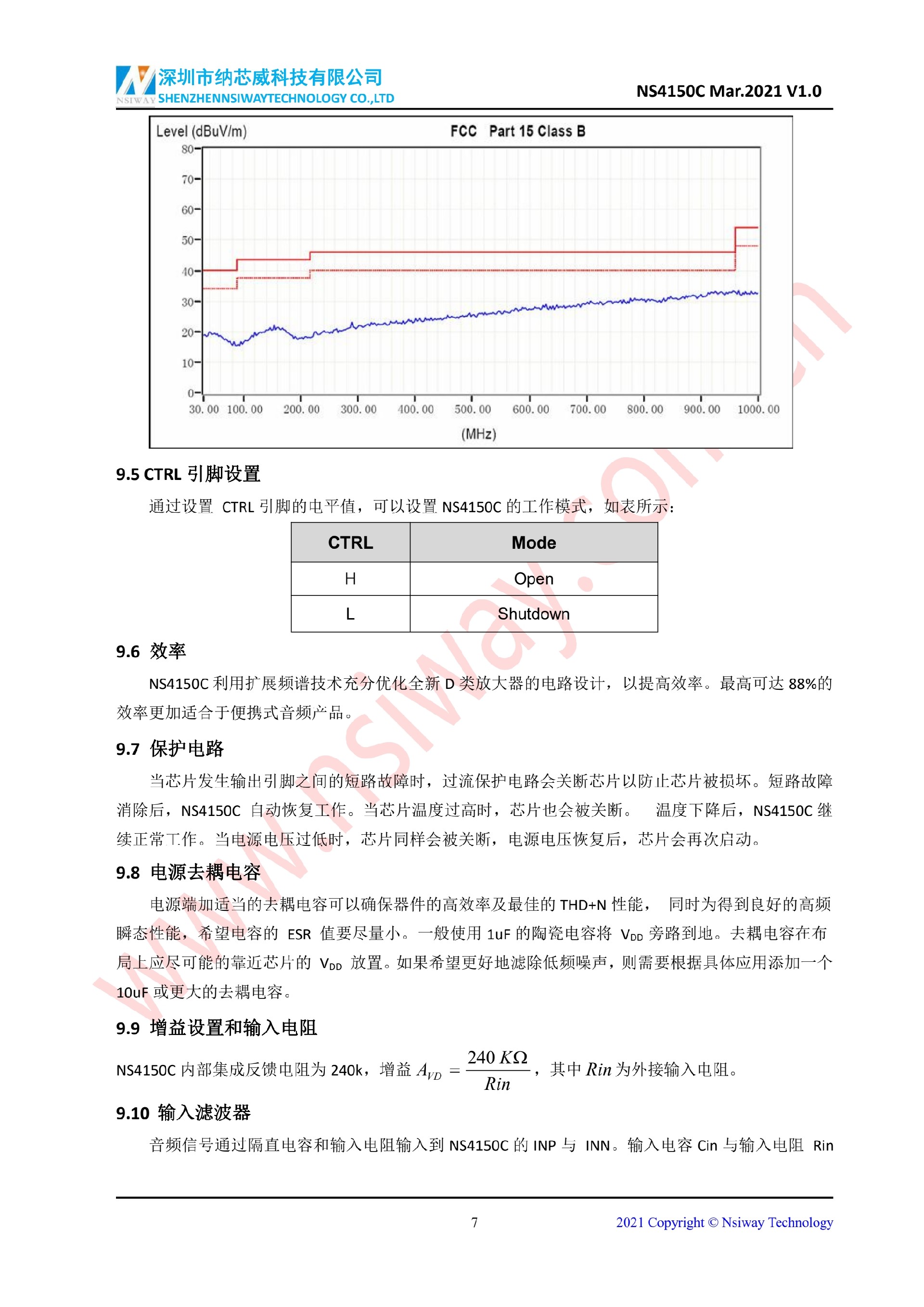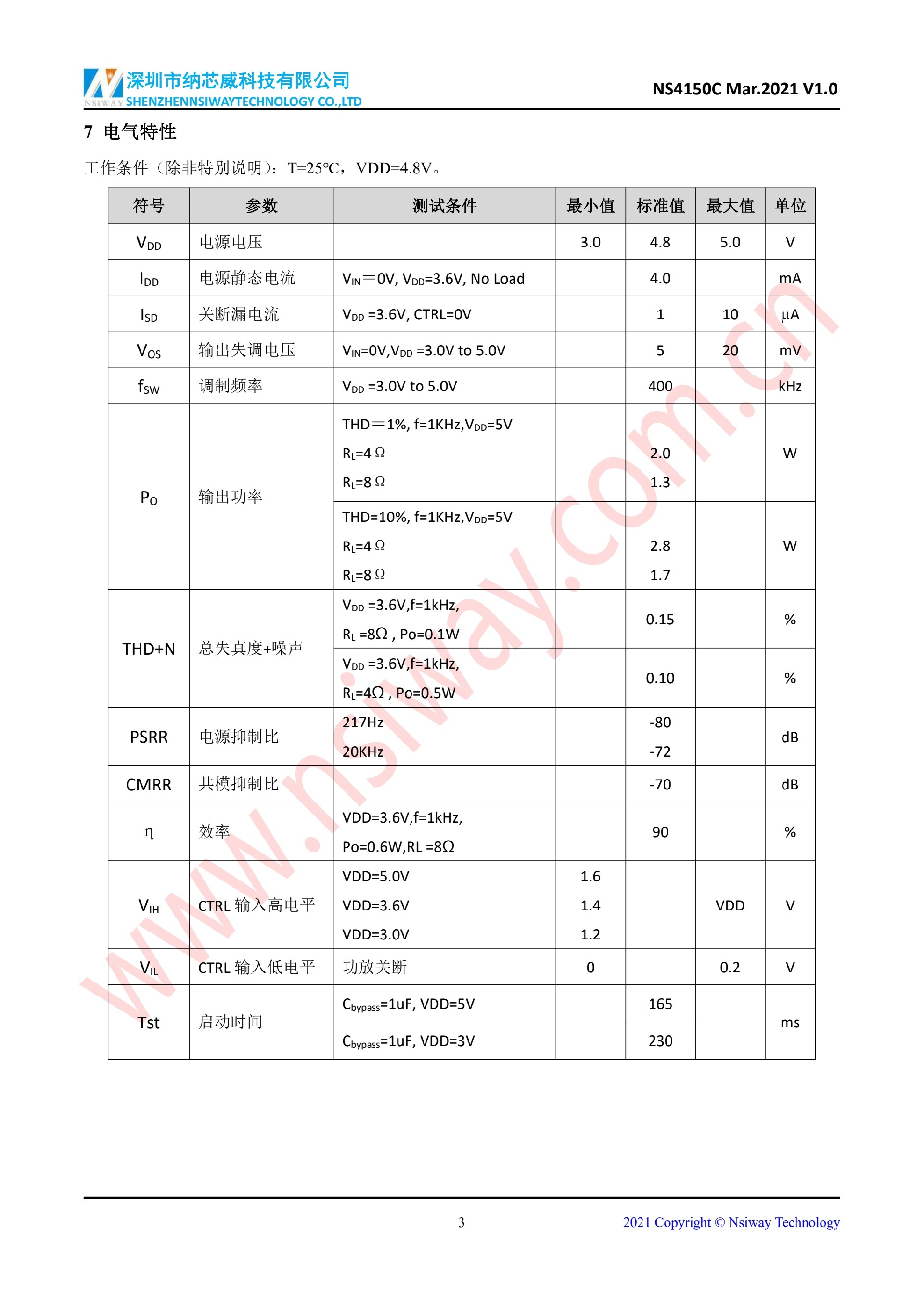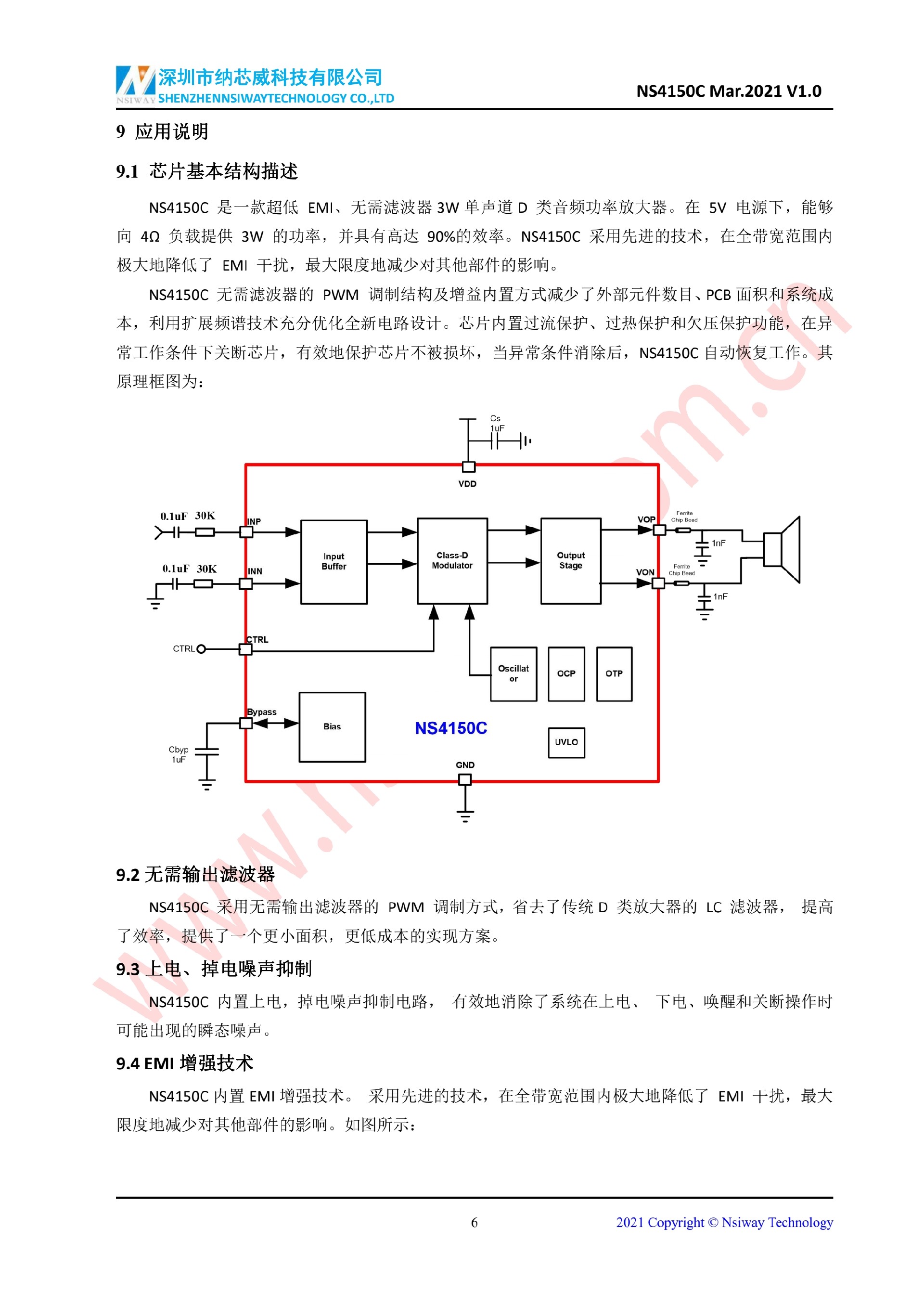 NS4150C 3.0W 單聲道 D 類音頻功率放大器