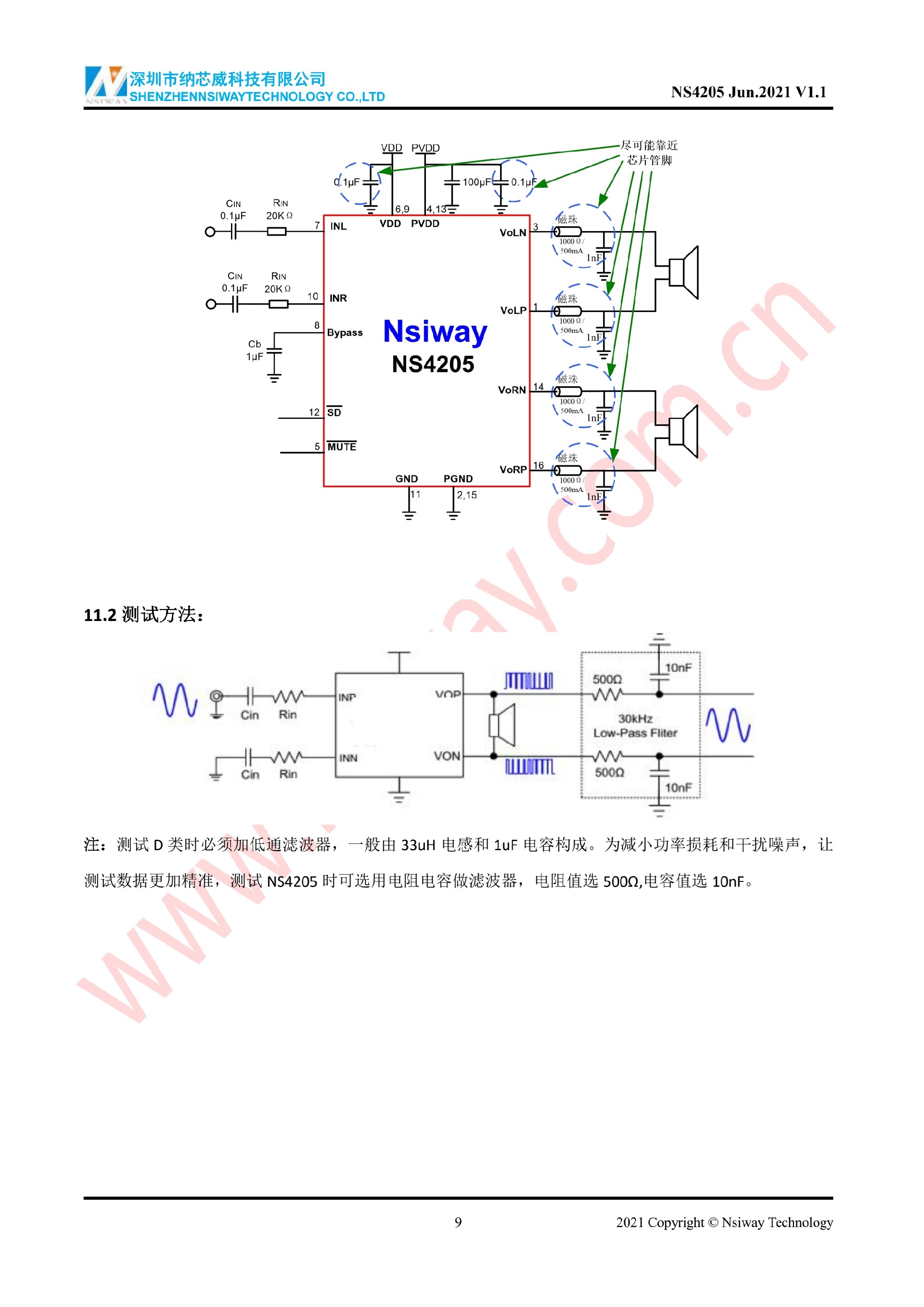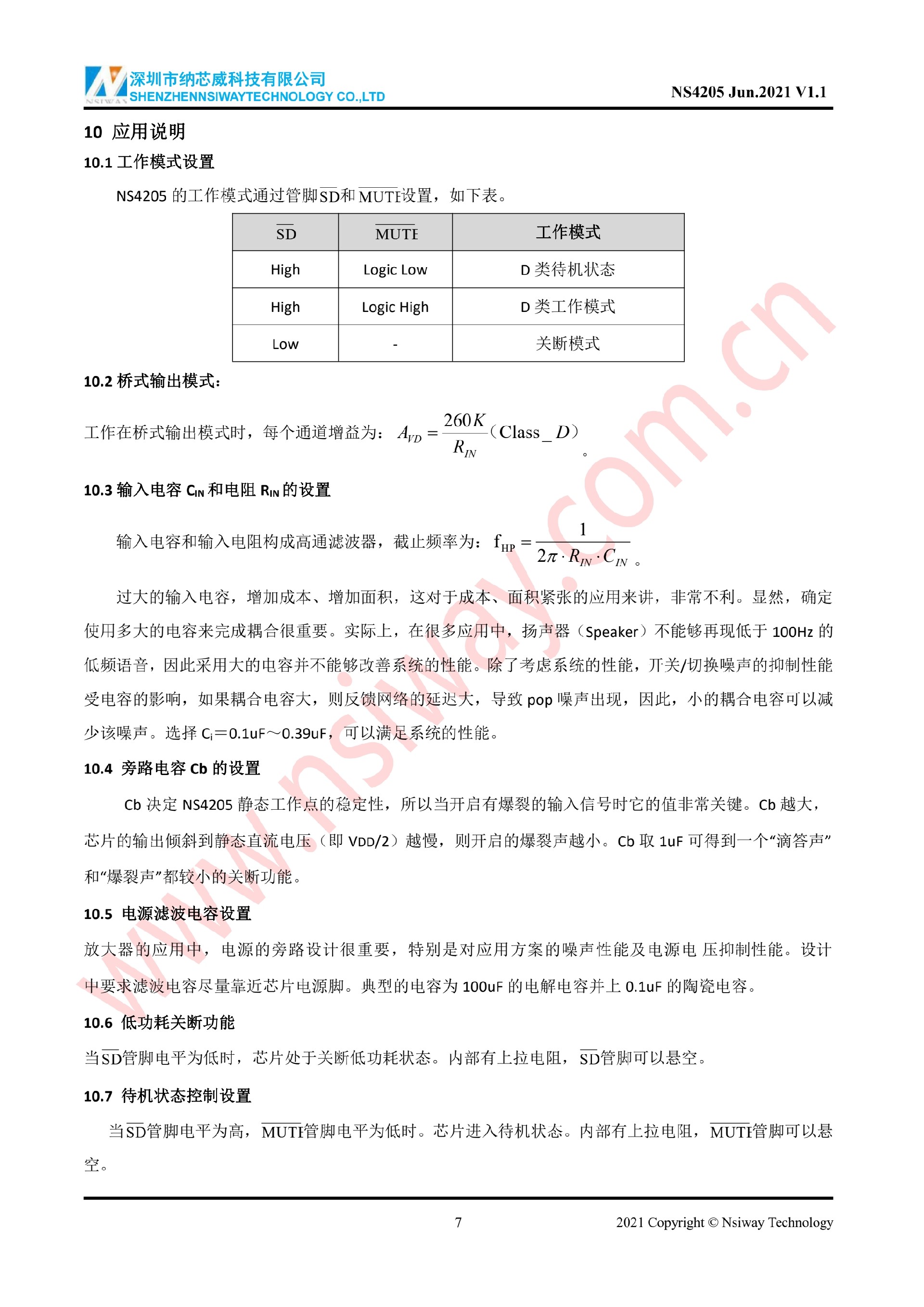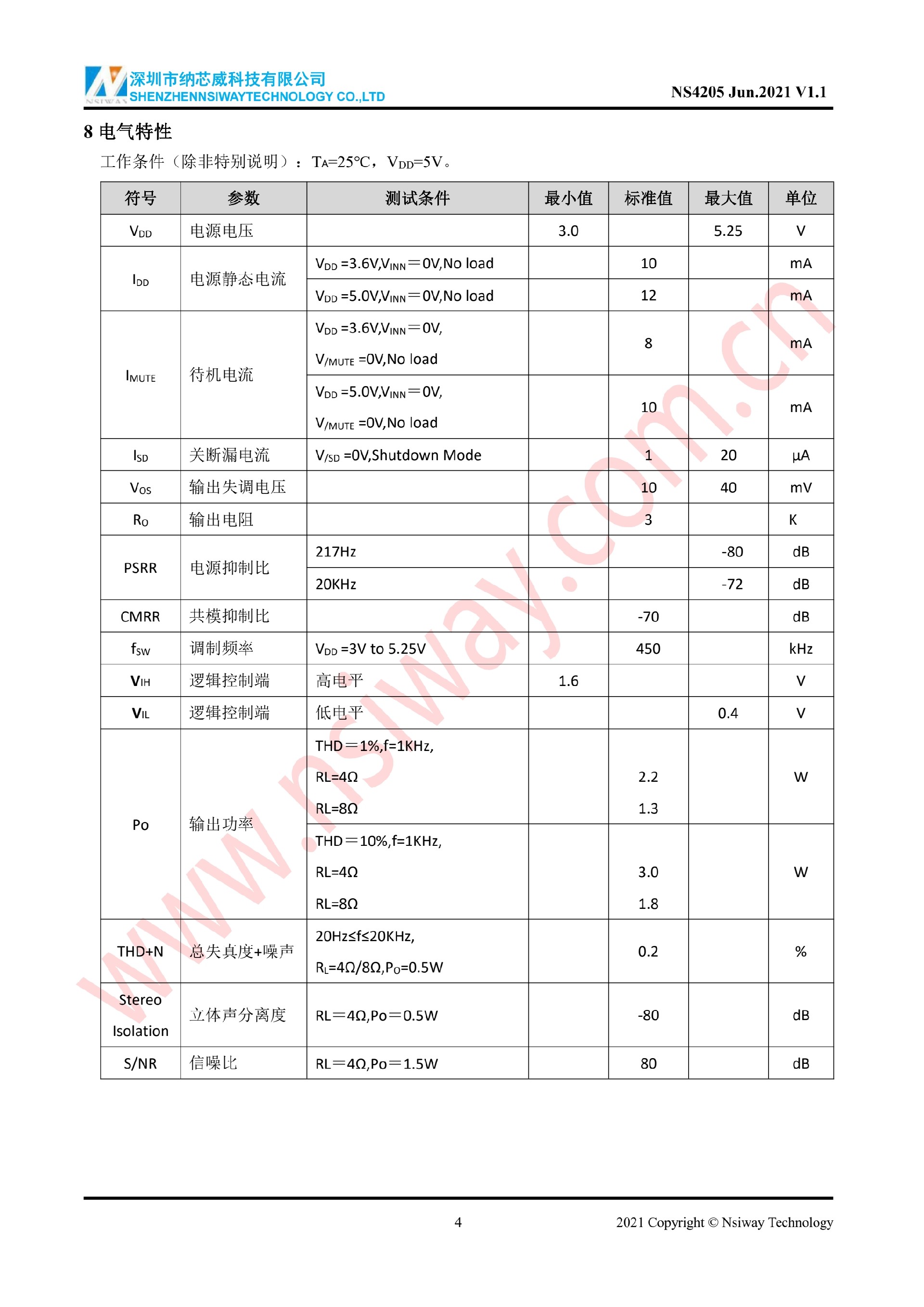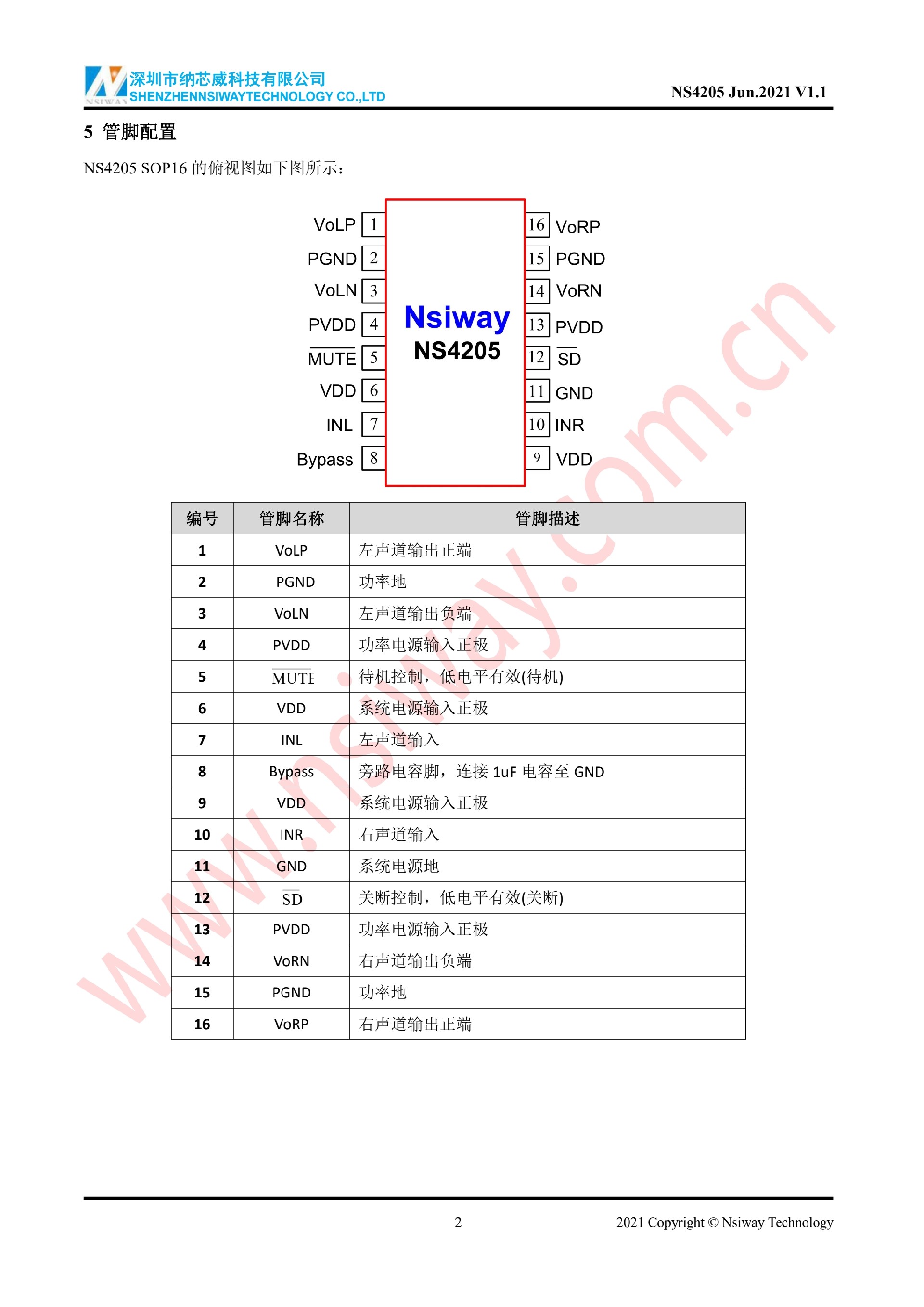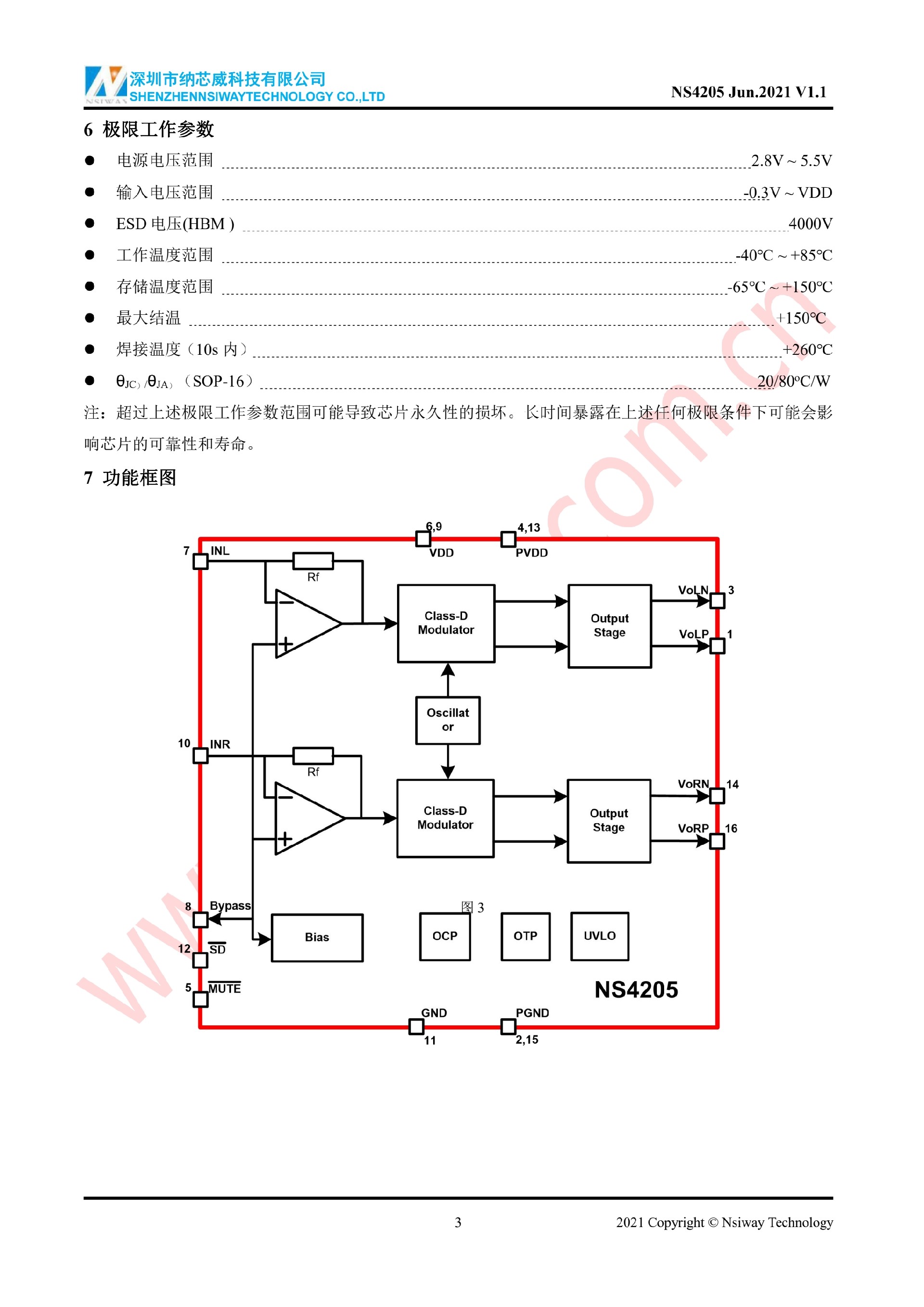 NS4205 3W×2 雙聲道D類音頻功率放大器附加MUTE功能